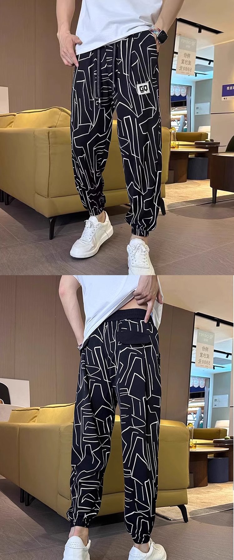 JL-남성 아이스 프린트 캐주얼 9부 팬츠